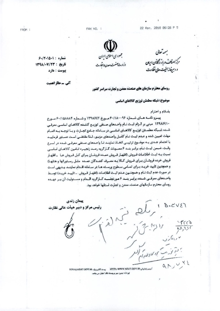 اطلاعيه در خصوص کالاهاي اساسي