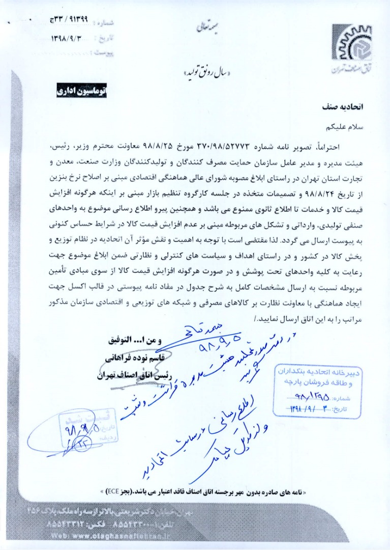 اتحاديه بنكداران و طاقه فروشان پارچه هيچگونه كانال و گروه رسمي در فضاي مجازي از جمله واتساپ و تلگرام ندارد